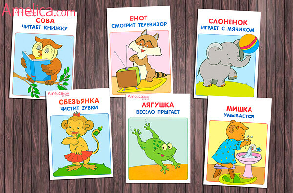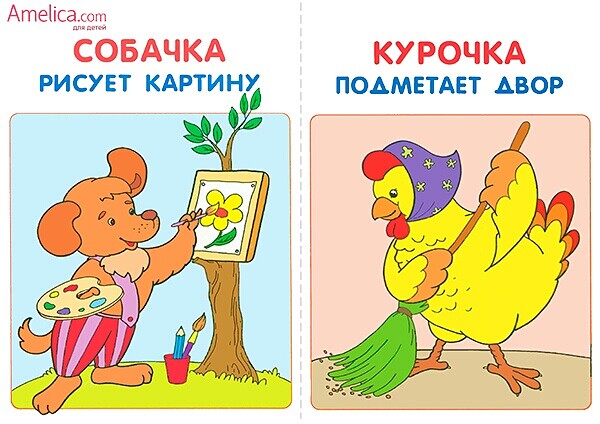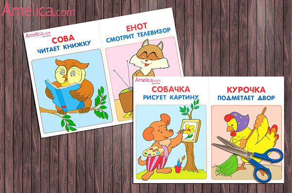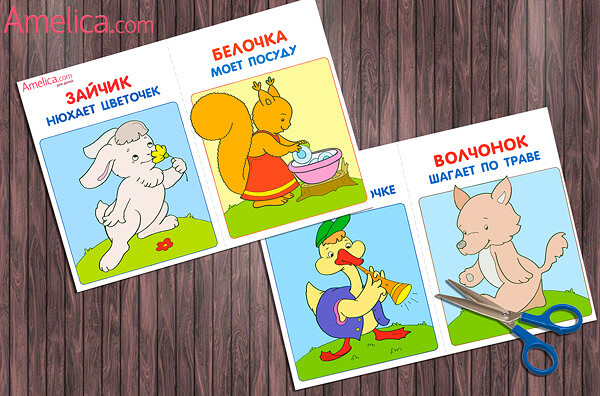04.20. Напечатанные слова-действия-режет. трёт, бежит, прыгает, ест, клюёт